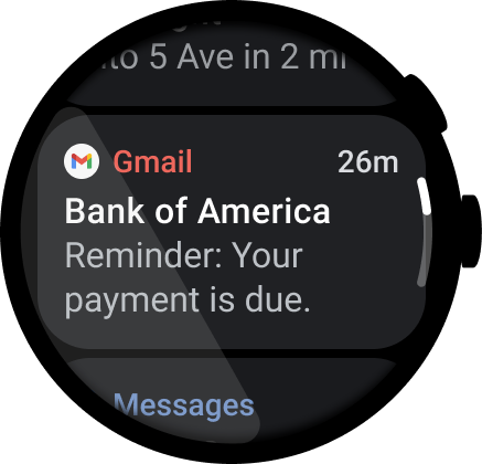 Notifications are glanceable, time-sensitive information and actions sent to the user.