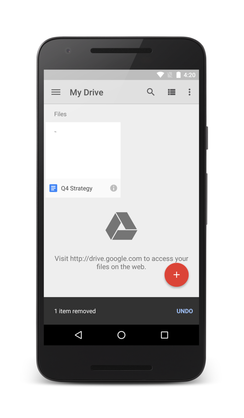 Figure 1. A Snackbar shows a message at the bottom of the activity, and the rest of the activity is still usable.