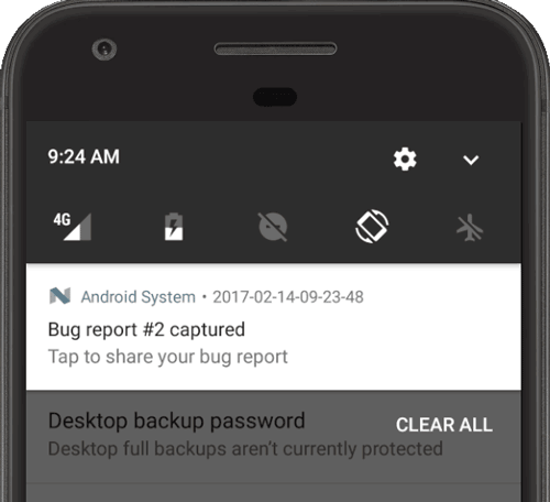 Capturing bug reports is helpful as you're using the app yourself, but your end-users can't easily share these types of bug reports with you. To get crash reports with stack traces from real-world users, take advantage of the Google Play and Firebase crash reporting features.
