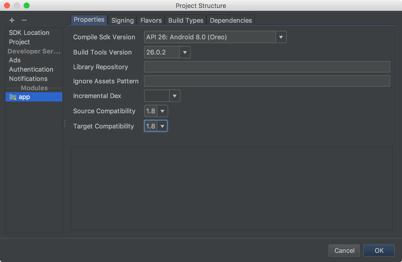 To update your project to support the new Java 8 language toolchain, update the Source Compatibility and Target Compatibility to 1.8 in the Project Structure dialog (click File > Project Structure). To learn more, read how to use Java 8 language features.